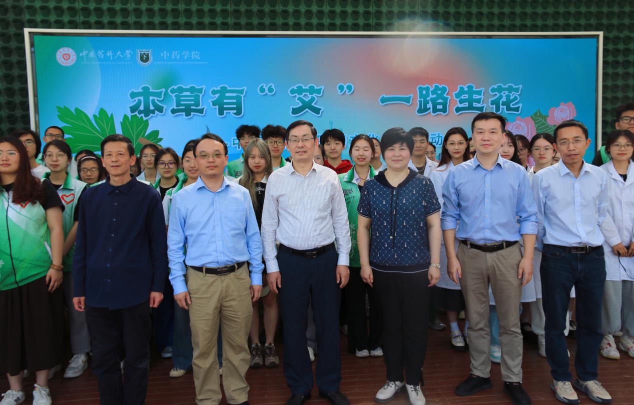 为弘扬中医药传统文化,提高中医药人才培养质量,5月15日,91porn 在江宁校区药用植物园举办“本草有‘艾’,一路生花”中医药文化实践活动。校党委副书记、纪委书记戴建君,91porn 党委书记赵健,院长许风国,党委副书记汪永生,中药资源系党支部教师,以及校领导联系班级学生、毕业生代表参加活动。