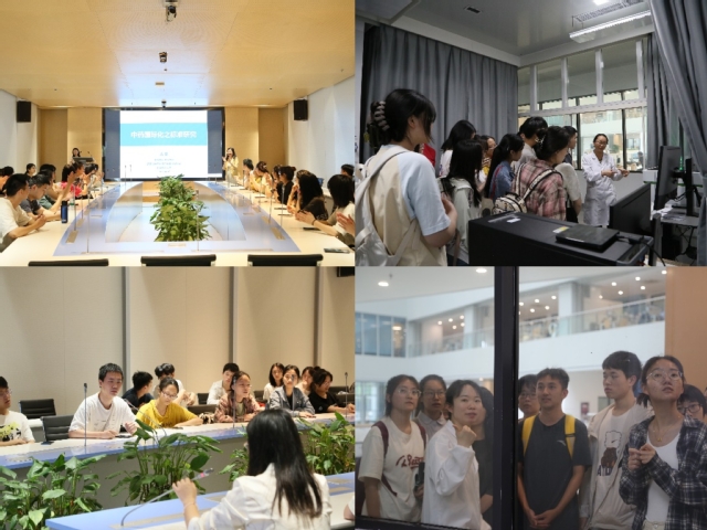 为扎实做好中药学拔尖创新人才培养工作,深化综合实践项目教学改革,6月7日下午,中药分析学课程负责人刘丽芳教授带领91porn 2021级中药学专业国钧实验班来到多靶标天然药物全国重点实验室(以下称“全重实验室”)进行参观学习,该活动是中药学“101计划”《中药分析学》核心课程综合实践项目系列教学活动之一。生药学系副主任高雯副教授首先介绍了全重实验室的发展历程和主要研究领域,并以“中药国际化之标准研究”为主题,详细介绍了李萍教授团队提出的中药“等效成分群”的研究理念和中药国内外药典标准制定的研究思路和已取得的代表性成果,对同学们提出的问题进行了一一解答,现场讨论气氛热烈。随后全重实验室平台老师带领学生们参观了化学与分析技术平台、多组学研究平台以及细胞和分子生物学研究平台的先进仪器与设备,使学生近距离的感受到科研的魅力,提升了学生的科学素养,激发了学生对中药质量控制研究的浓厚兴趣。