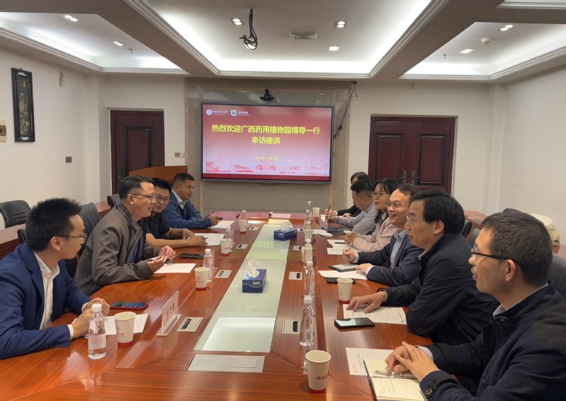 11月5日下午,广西壮族自治区药用植物园党委书记、主任张占江等一行来访91porn 座谈交流。院长许风国,副院长罗建光,党委副书记、纪委书记、副院长张朝凤及学院教师代表参会。座谈会由许风国院长主持。