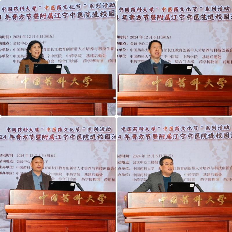 开幕式上,校党委副书记朱红表示,中医药文化在中华文明中具有重要的地位,要以坚定的文化自信谱写中医药传承创新发展新篇章,希望通过校地合作、强强联合的创新模式,共同走出一条“医药融合”赋能“健康生活”的新路径,不断开辟中药现代化发展的新赛道。江苏省中医药发展研究中心主任冯广清充分肯定了我校对江苏省中医药产业发展的贡献,期待本次校地合作可以助力江苏省中医药产业高质量发展。南京市江宁区卫生健康委员会副主任王德彪就江宁区推动中医药事业发展的相关政策作简要说明,希望与学校共同努力,深化中医药领域的合作,为地区卫生健康事业的发展注入新活力。附属江宁中医院党委书记朱义平介绍了中医院基本情况,希望深化院校合作,为江宁区的中医药健康事业作出更大贡献。