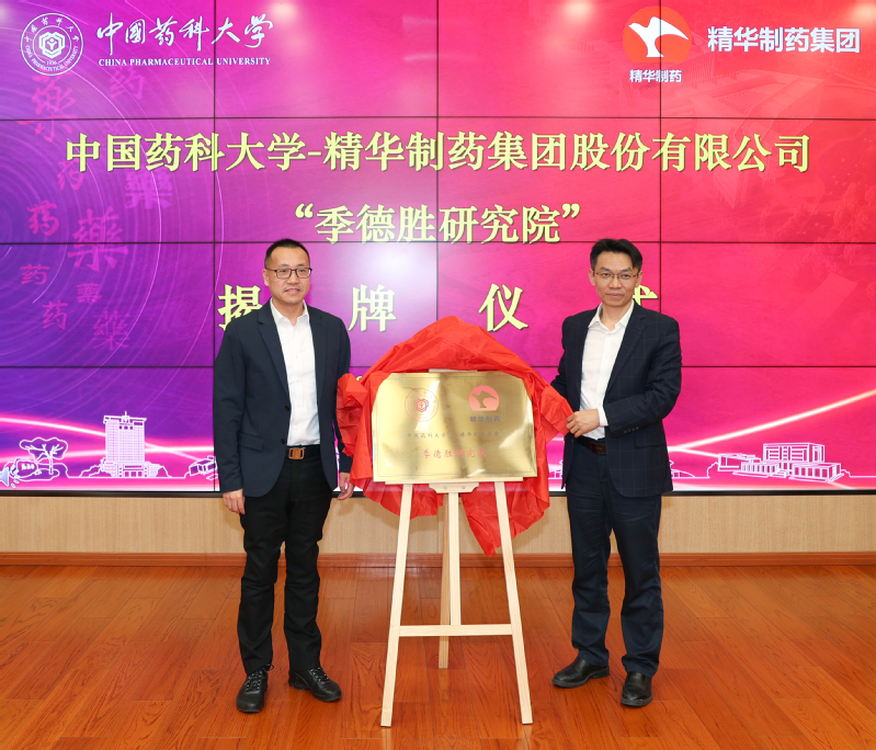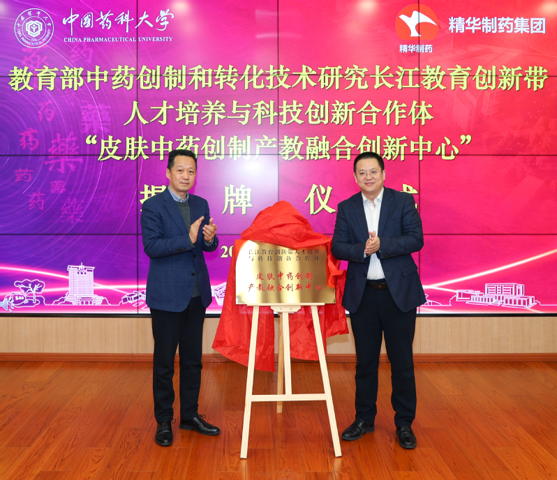 签约仪式上,精华制药集团股份有限公司总工、研究管理院院长周云中与我校91porn 院长许风国共同签署了战略合作协议。校长郝海平和精华制药董事长尹红宇共同为“91porn -精华制药集团股份有限公司‘季德胜研究院’”揭牌。我校副校长姚和权与江苏省卫健委二级巡视员、中医科教处处长石志宇共同为“教育部中药创制和转化技术研究长江教育创新带人才培养与科技创新合作体‘皮肤中药创制产教融合创新中心’”揭牌。
