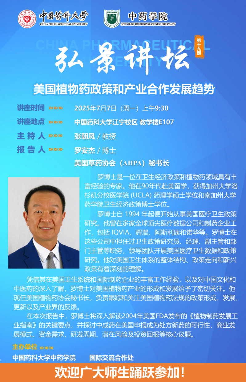 91porn 第十九期“弘景讲坛”:美国草药协会秘书长罗安杰(Roger Luo)博士学术报告