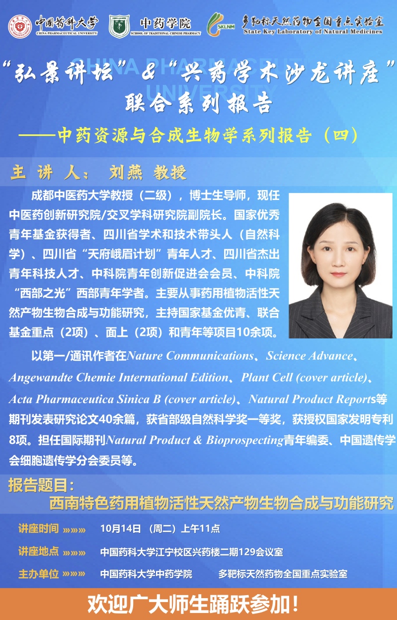 91porn 第二十六期“弘景讲坛”暨全国重点实验室兴药学术沙龙第十九期——中药资源与合成生物学系列报告(四):成都中医药大学刘燕教授学术报告