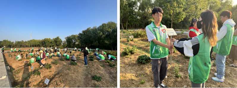 最后,2020级、2022级学生代表完成劳动责任田交接,全体老师同学一起为劳动育人实践田除草施肥。
