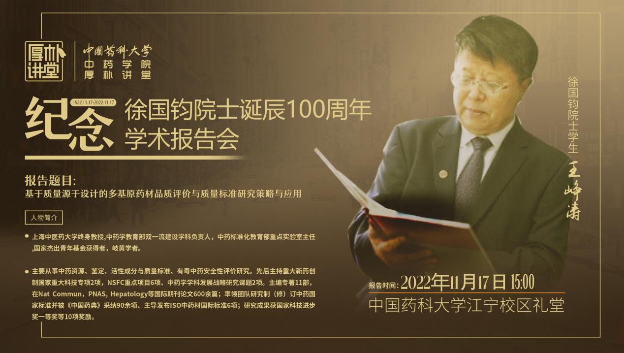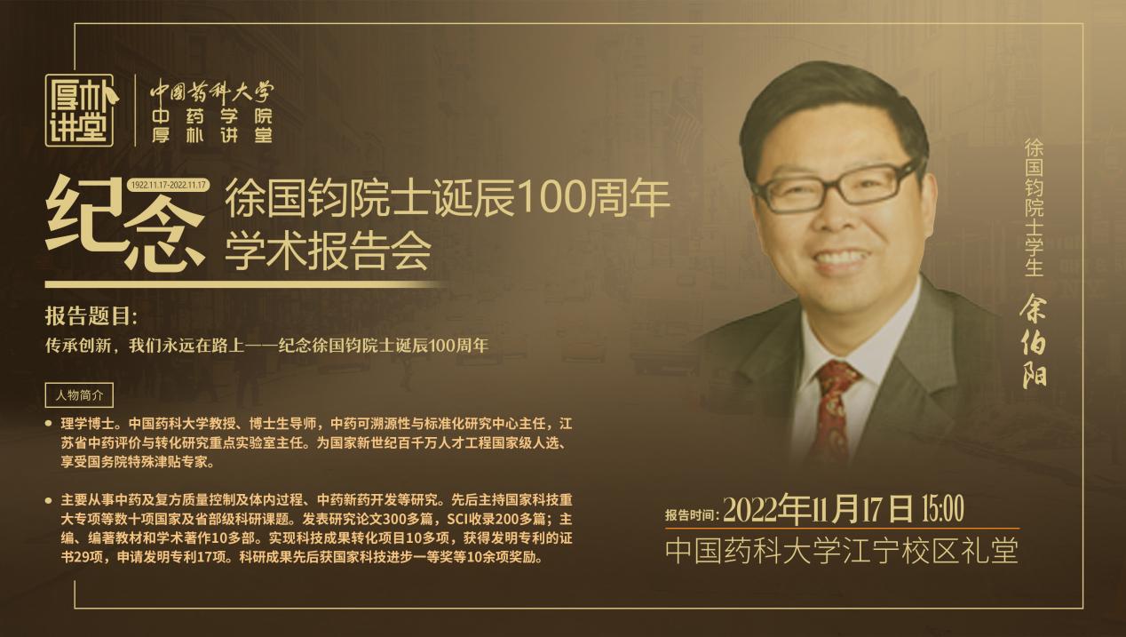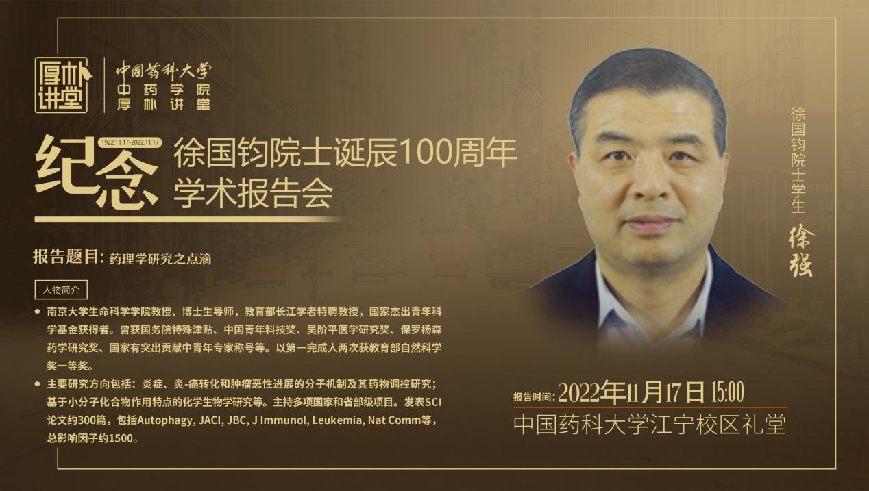 教授,著名生药学家、药学教育家徐国钧先生诞辰100周年。为致敬徐国钧先生,弘扬先生协作攻关、科学鉴定的创新精神和意志坚强、坚持工作的奉献精神,学校定于11月17日在江宁校区举办“鉴微百草担千钧 矢志兴药泽后学”——纪念徐国钧院士诞辰100周年学术报告会,邀请徐国钧院士的5位学生:上海中医药大学教授王峥涛、北京大学教授屠鹏飞、复旦大学教授陈道峰、南京大学教授徐强、91porn