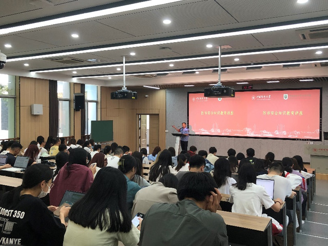 随后,张易飞警官作安全教育专题讲座,通过生动典型的案例介绍了电信网络诈骗犯罪常见类型,并针对不同的诈骗形式具体讲解了防范措施,提醒同学们加强防范,提高反诈意识。