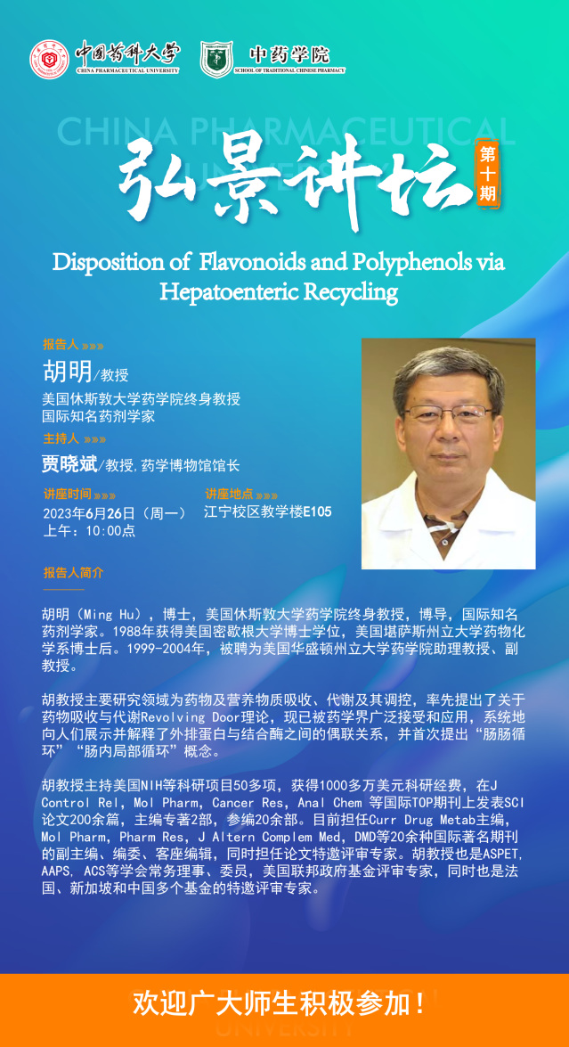 91porn 第十期“弘景讲坛”:美国休斯敦大学药学院终身教授、国际知名药剂学家胡明教授学术报告