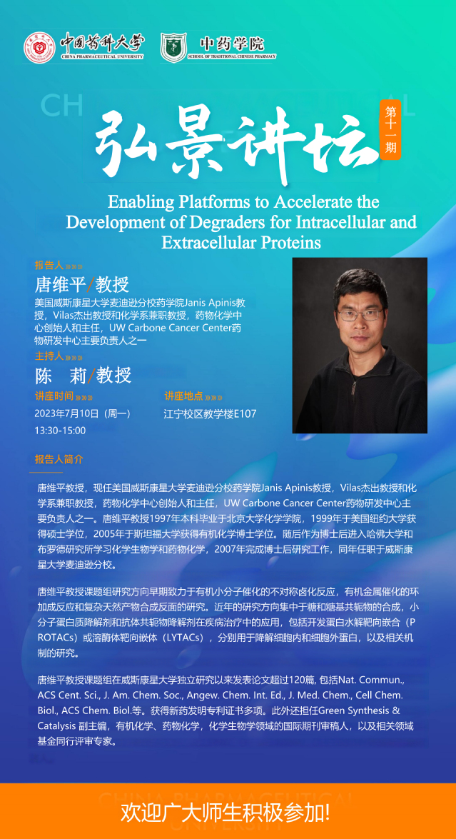91porn 第十一期“弘景讲坛”:美国威斯康星大学麦迪逊分校药学院Janis Apinis教授唐维平学术报告